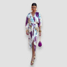 Step into elegance with the Amara Dress—a stunning purple V-neck dress designed to make you feel confident and sophisticated. Crafted from premium-quality fabric, this dress offers a flattering fit that enhances your natural curves while ensuring all-day comfort. Whether you're attending a formal event or heading out for a stylish night on the town, the Amara Dress is your go-to choice for effortless glamour. Please note: The pattern may vary slightly, making each dress uniquely yours.
