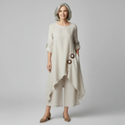 This flowing dress set is a celebration of ease and sophistication — a refined companion for days when you want to look composed without trying too hard. Designed for natural comfort and fluid movement, it embodies timeless simplicity with a touch of quiet confidence.