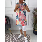 Say hello to color, comfort, and confidence with the Linda Bloom Tunic Dress. Featuring a cheerful watercolor floral print, breezy fit, and practical pockets, this easygoing tunic brings effortless charm to your wardrobe. Designed to flatter every shape, it’s perfect for layering or wearing on its own for a relaxed, put-together look—no matter the season.