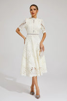 The TINA Elegant Flower Embroidered Dress is a stunning blend of sophistication and artisanal charm. Adorned with delicate floral embroidery throughout its flowing silhouette, this dress offers a refined look with effortless wearability. Made from lightweight, breathable fabric, TINA gracefully elevates your everyday elegance.